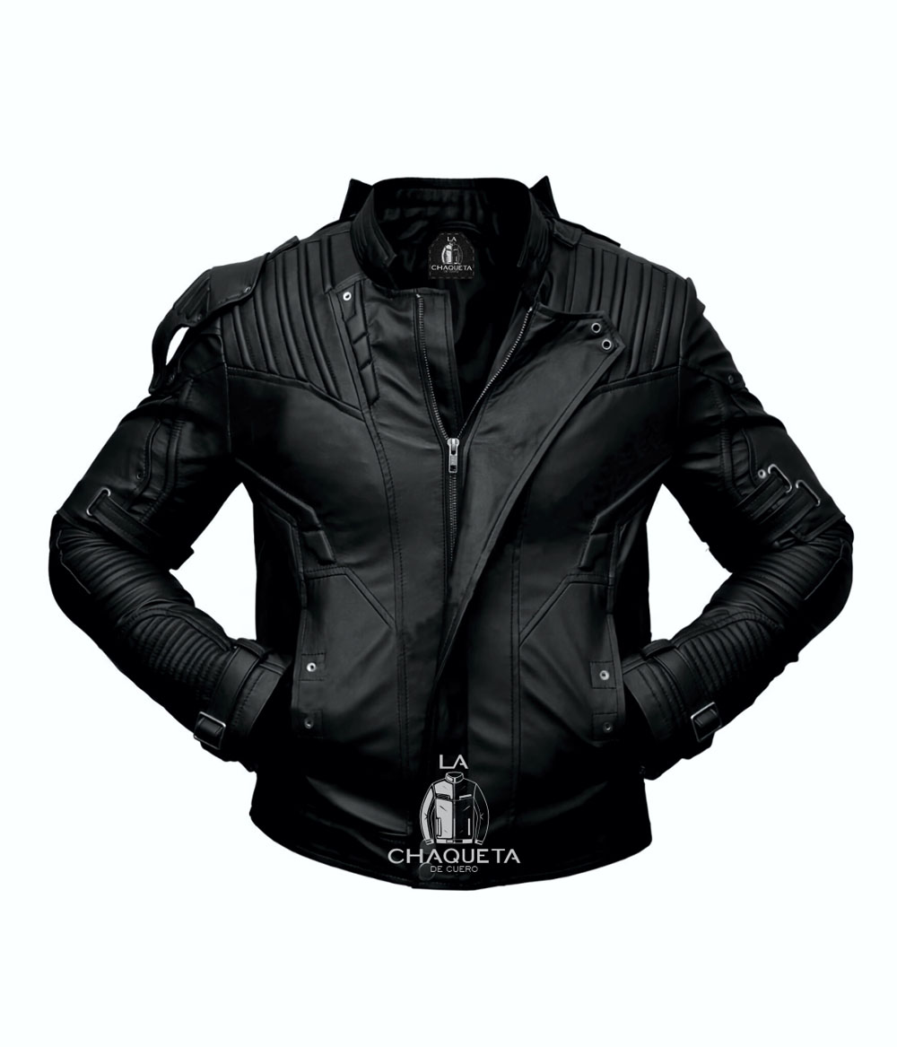 Chaqueta en cuero 100% natural, un juego de volumenes y texturas, correas decorativas en brazos y puños, herrajes y forro de alta calidad, bolsillo secreto parte interna.
